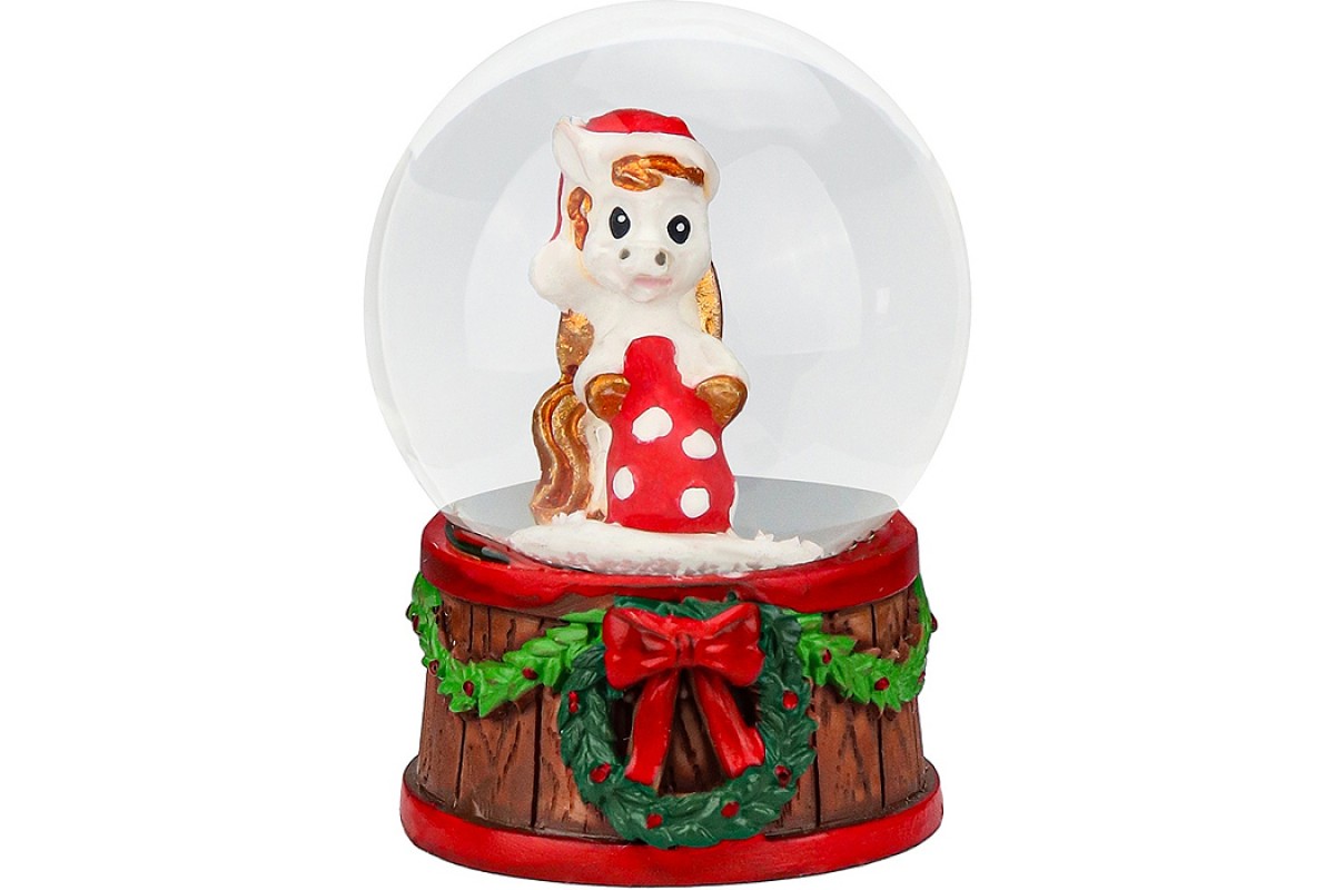 Новогодний сувенир Снежный шар "Лошадка с мешочком" d=4,5см