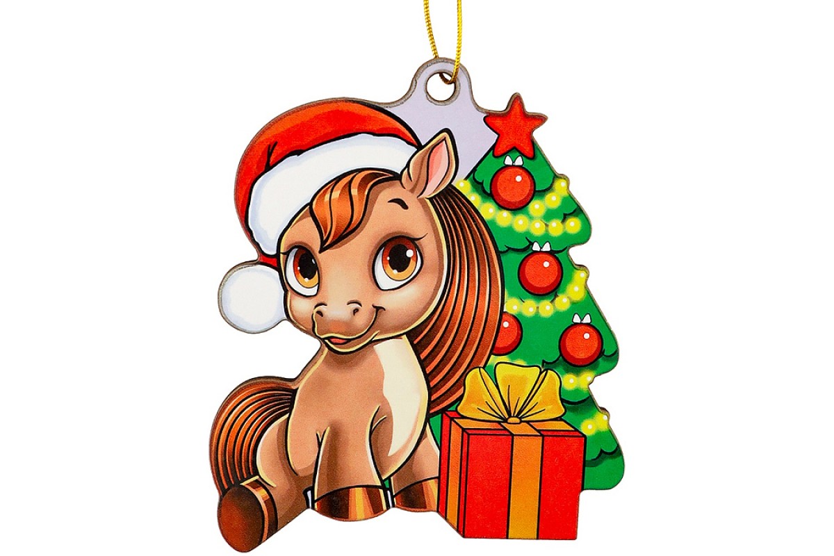 Новогодняя ёлочная подвеска из дерева "Пони и ёлочка" 9 см