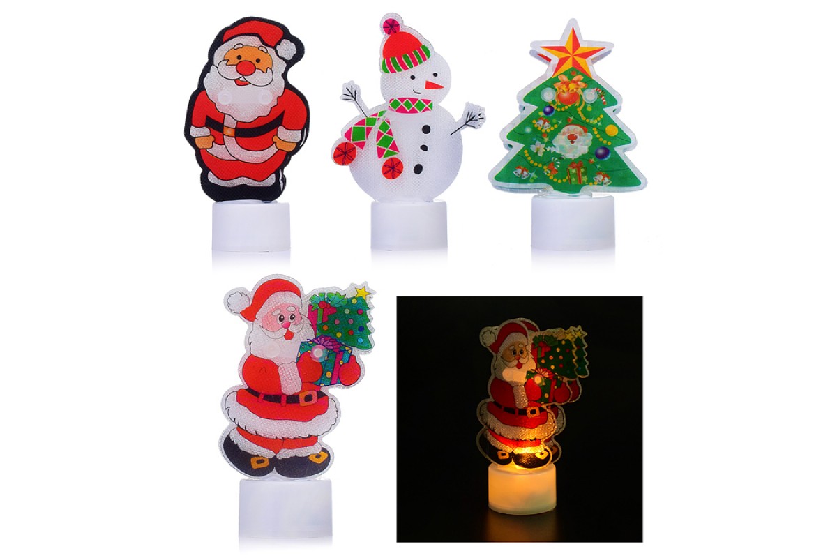 Новогодняя фигурка светящаяся 10см (Дедушка, снеговик, елка) в пакете