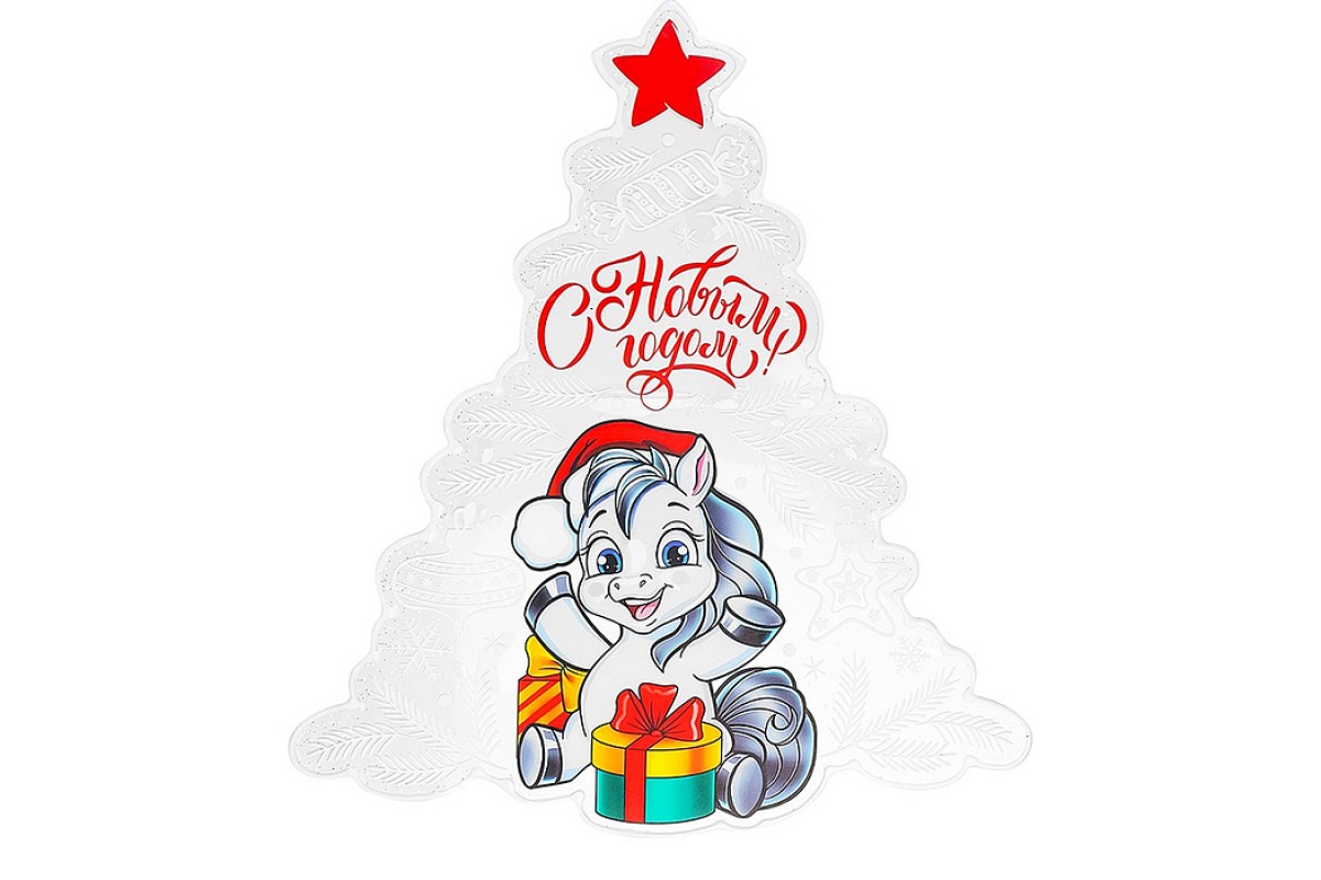 Силиконовая новогодняя наклейка "Лошадка с подарками" 33*30 см