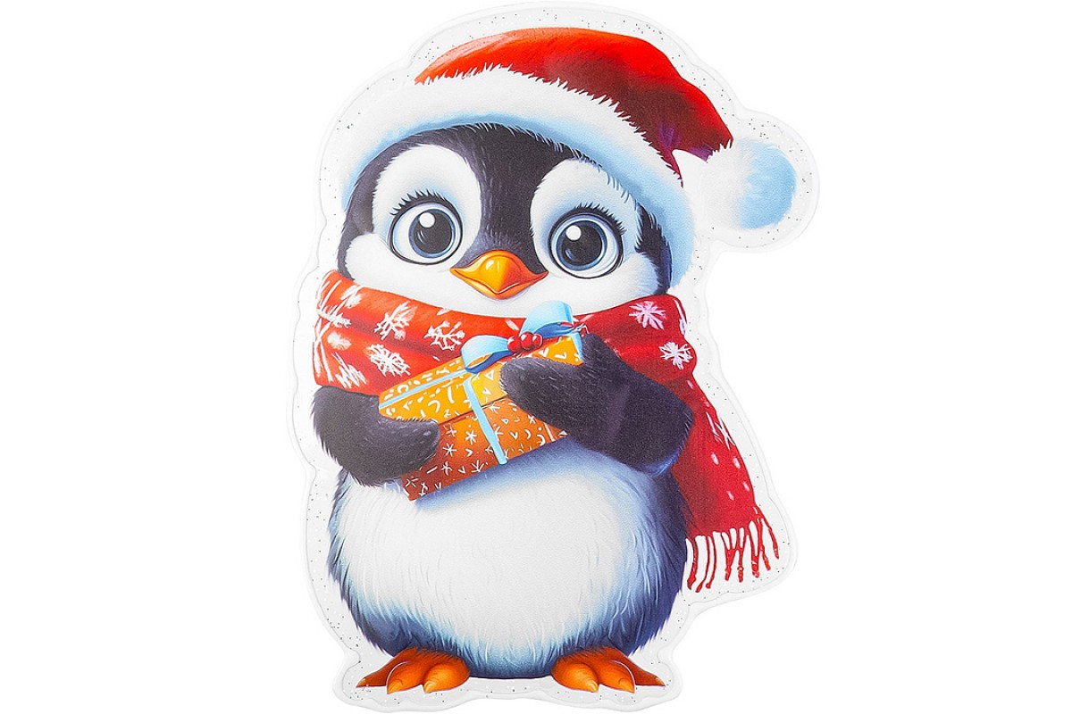 Силиконовая новогодняя наклейка "Новогодний пингвин" 20*25 см