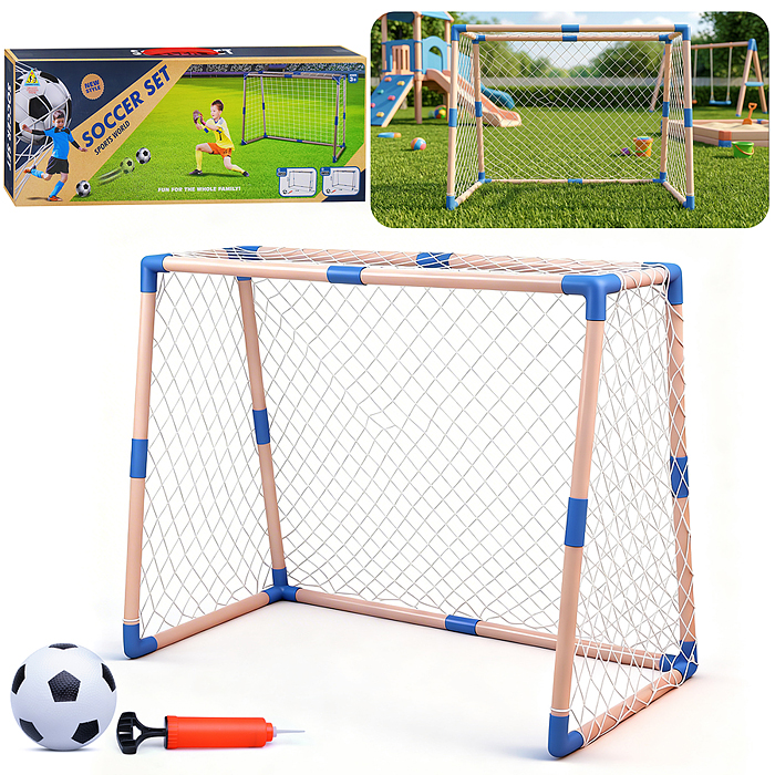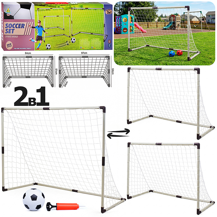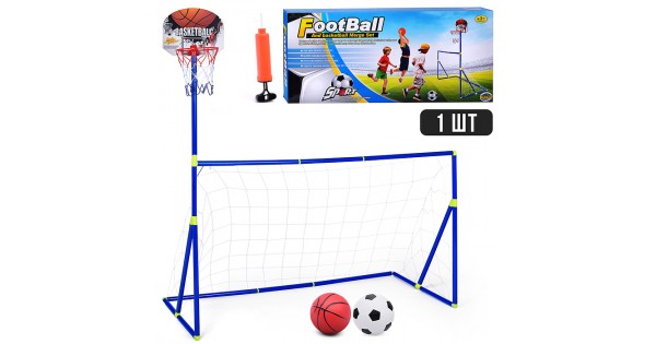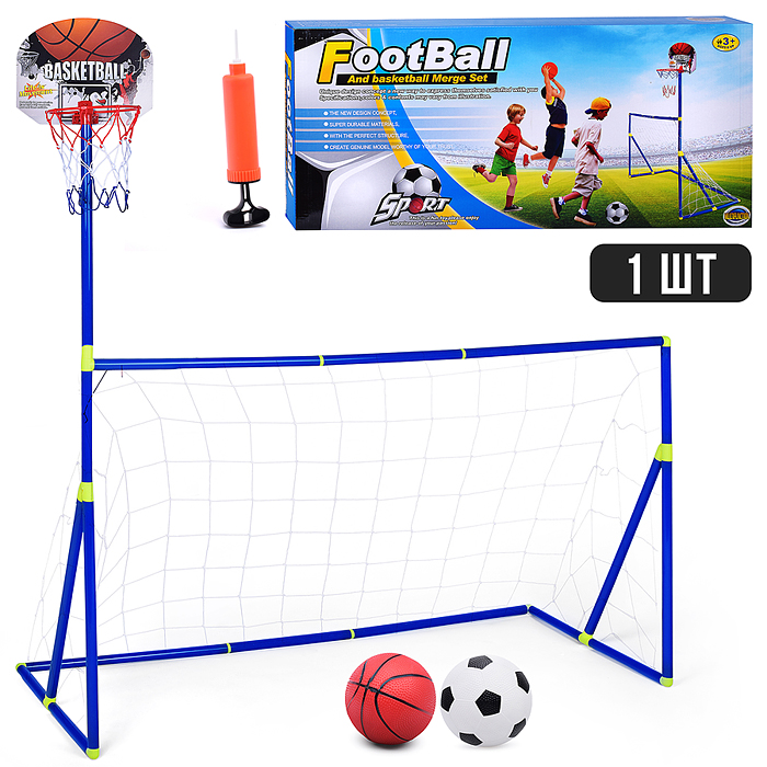 Ворота футбольные LT-15A20 с баскетбольной стойкой, 2 мячами и насосом (154*65*170см.) в коробке