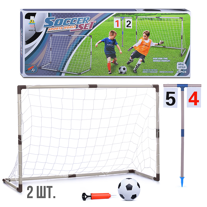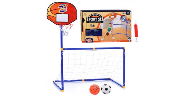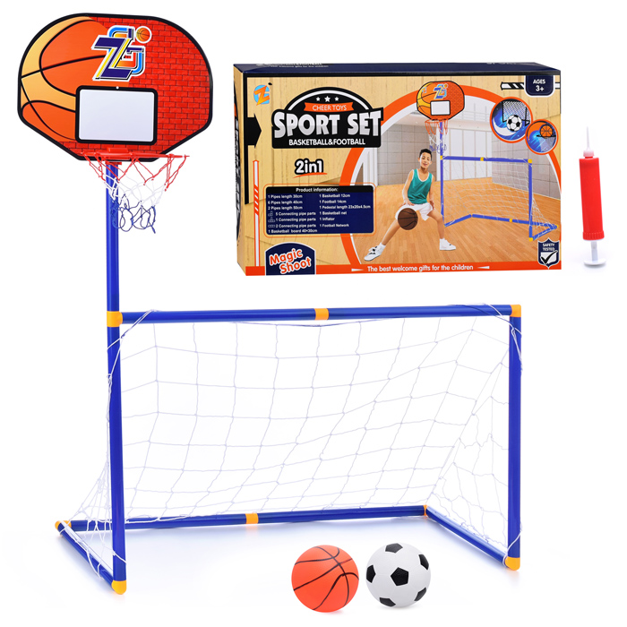 Ворота футбольные с баскетбольной стойкой, мячом и насосом, в коробке