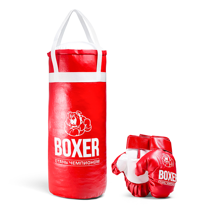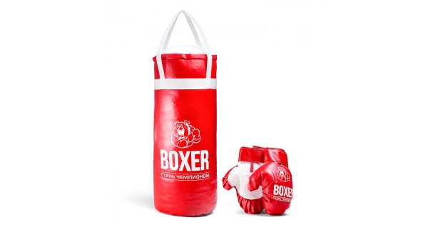 Боксерский набор №2А 40см (груша - экокожа; перчатки - текстиль) красный