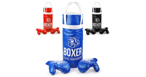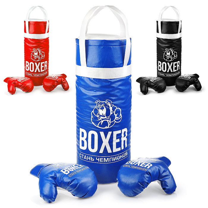 Боксерский набор №3А 50см (груша - экокожа, перчатки - текстиль) синий