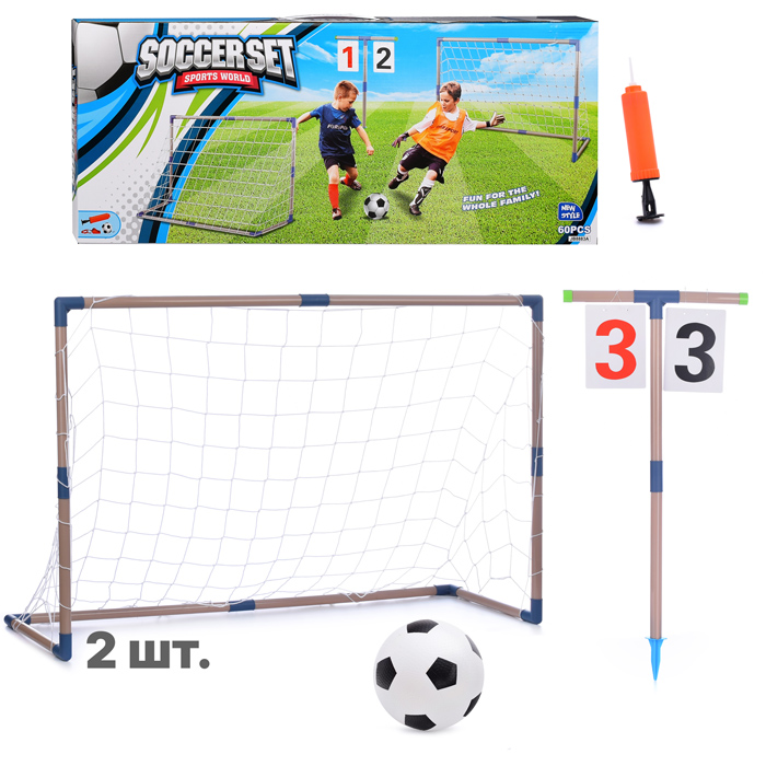 Ворота футбольные с баскетбольной стойкой, мячом и насосом, в коробке