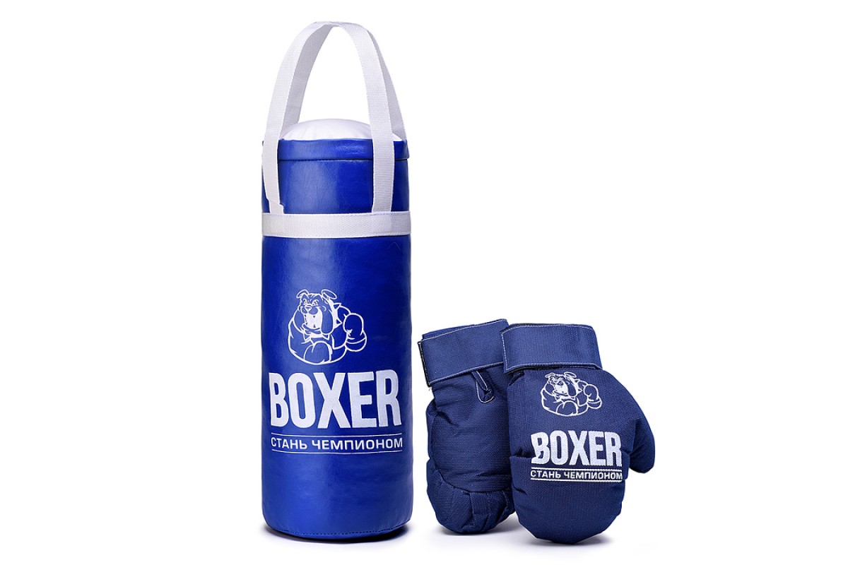 Боксерский набор №2А 40см (мешок - экокожа; перчатки - текстиль) синий