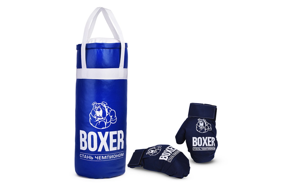 Боксерский набор №3А 50см (груша - экокожа, перчатки - текстиль) синий