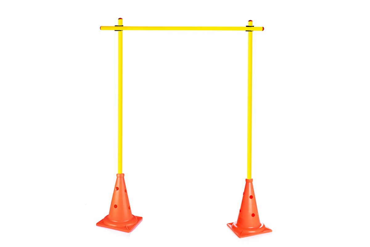 Состав: 2 конуса (23.5х23.5х32.5 см) с отверстиями, 2 втулки, 2 клипсы, 3 палки по 1,5 метра.