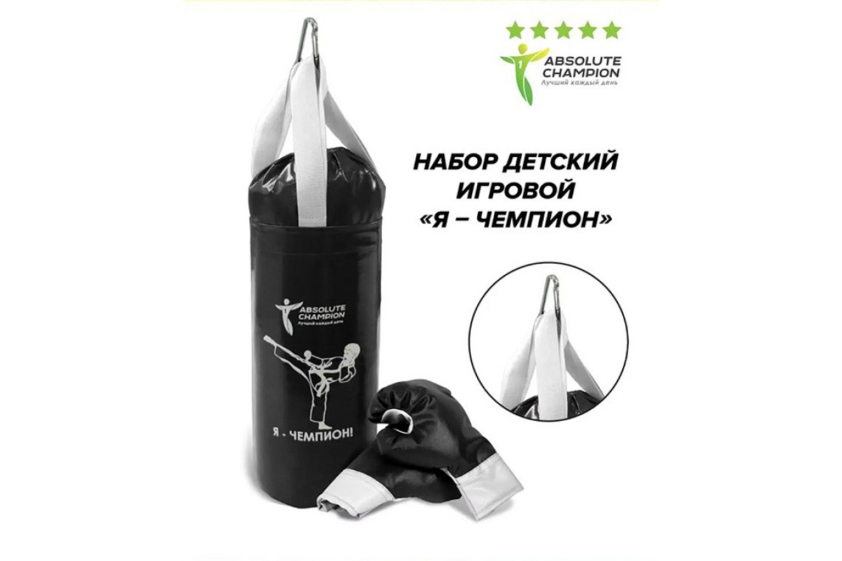 Набор детский игровой "Я-Чемпион" 8кг черный (перчатки, груша)