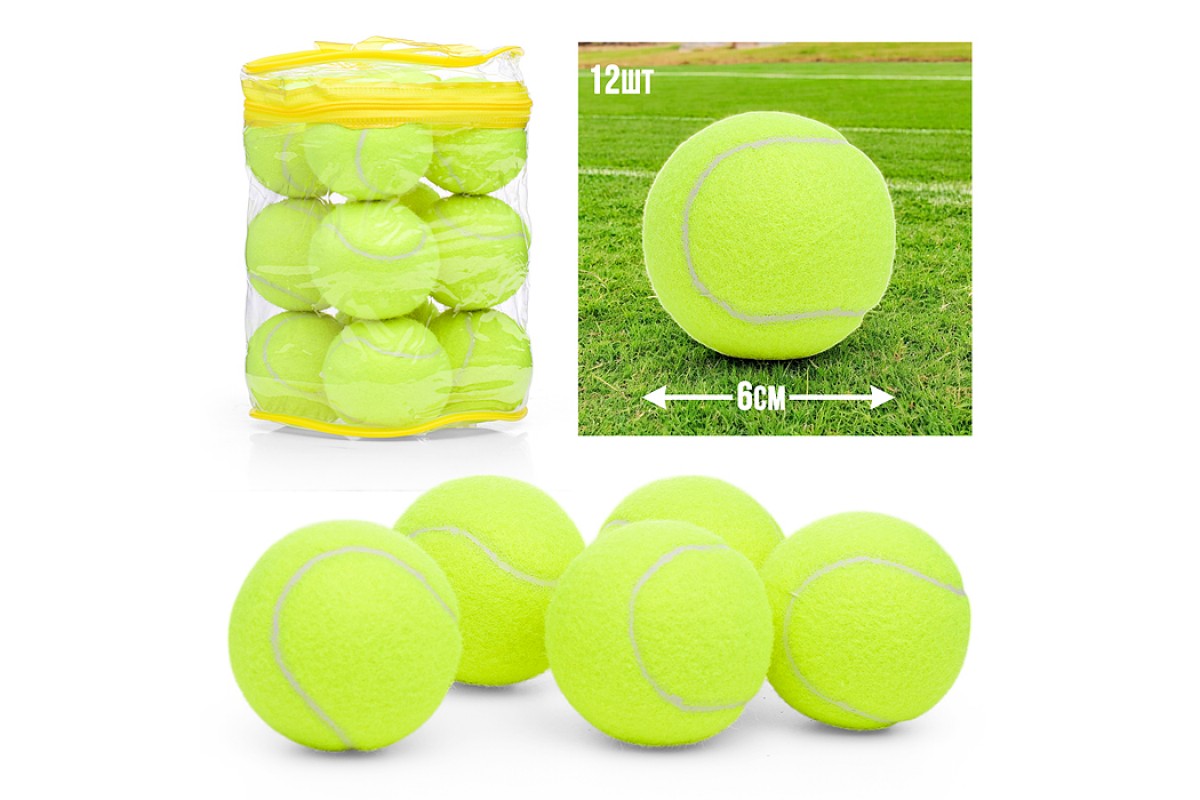 В наборе 12 мячей для тенниса диаметром 60 мм.