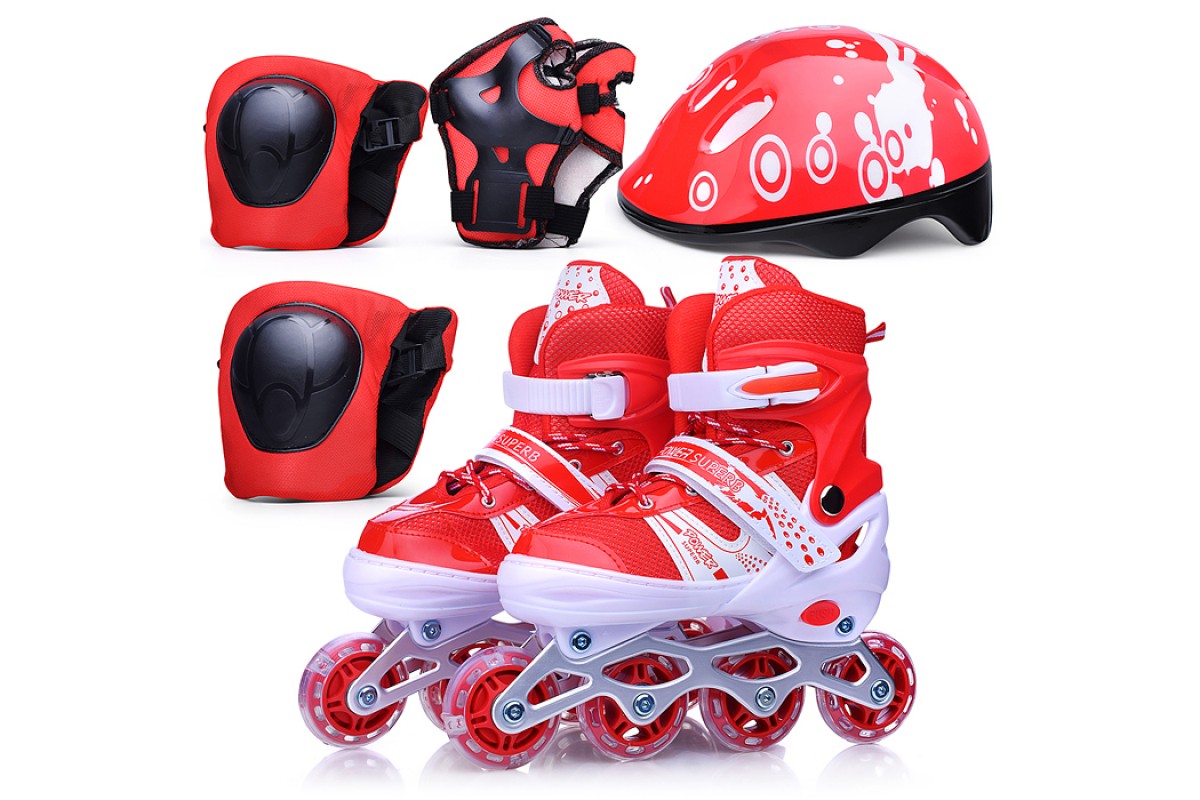 Ролики детские, размер M, красные (со шлемом и защитным снаряжением)