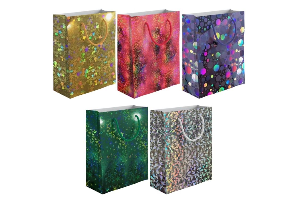 Пакет бумажный подарочный DE эффект: голография, 11,4х14,3х6,4см.