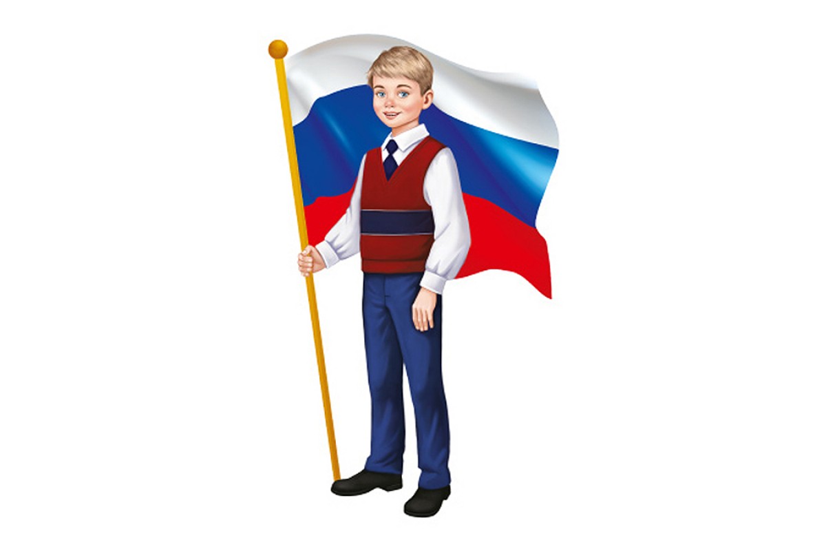 Плакат вырубной А4 "Мальчик с Российским флагом" (двухсторонний)