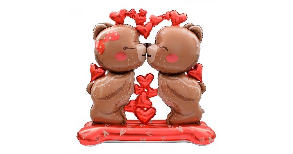 Шар 3D (59''/150 см) Фигура на подставке, Влюбленные мишки, 1 шт. в уп.