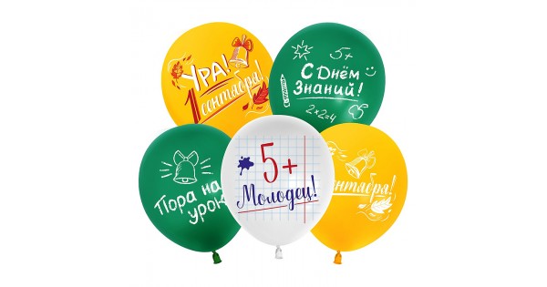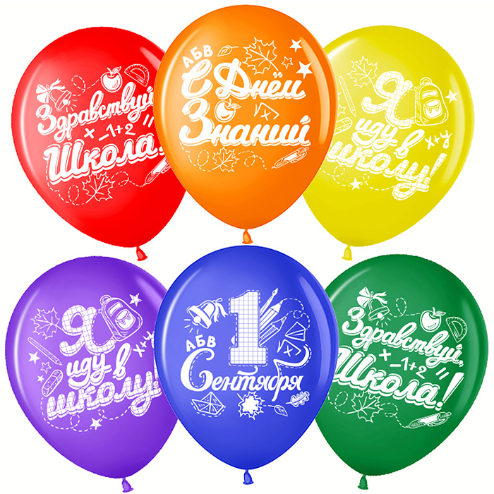 Шар (12''/30 см) 1 Сентября, Здравствуй Школа!, Ассорти, пастель, 2 ст, 25 шт.
