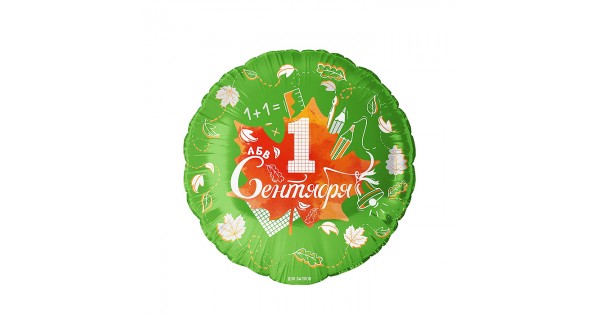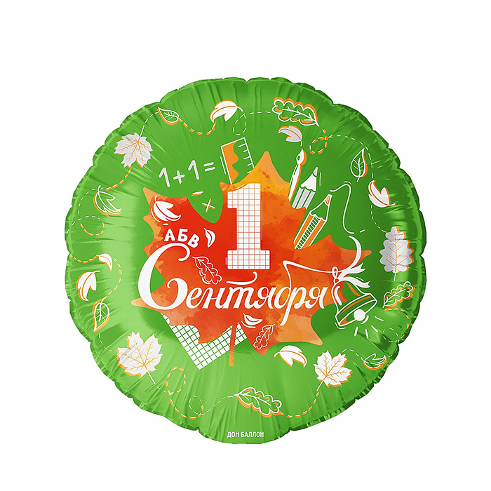 Шар (18''/46 см) Круг, 1 Сентября (кленовый лист), Зеленый, 1 шт. в уп.