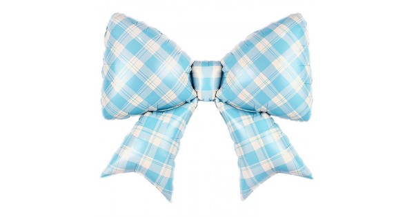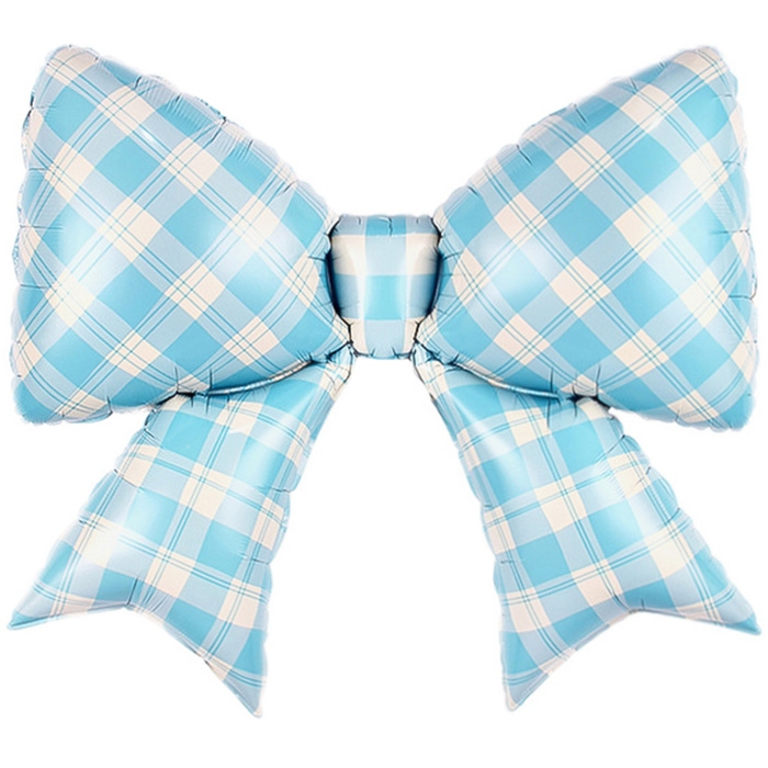 Шар (38''/97 см) Фигура, Бант, Клетка Виши, Голубой, Сатин, 1 шт. в уп.