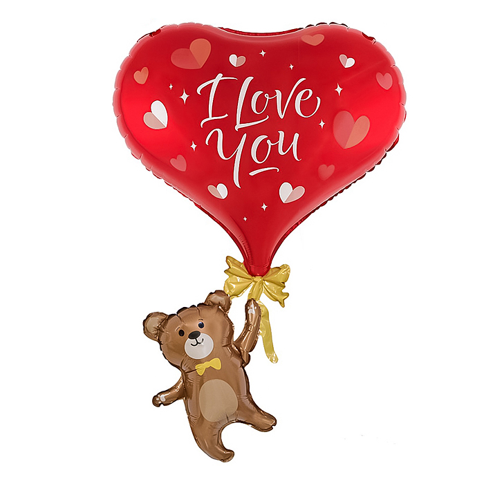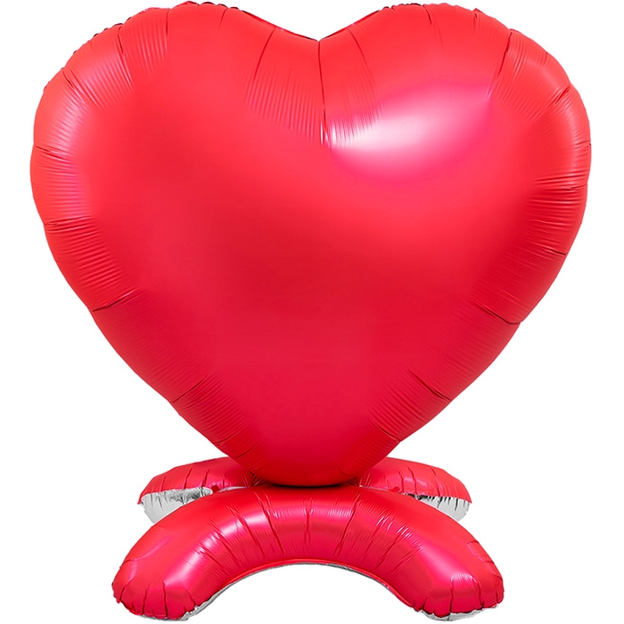 Шар 3D (65''/165 см) Сердце, на подставке, Красный, Сатин, 1 шт. в уп.