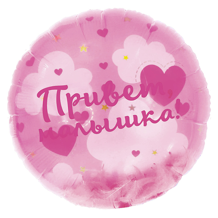 Шар (20''/51 см) Круг, Панорамный, Привет, Малышка! (воздушные перья), 1 шт. в уп.