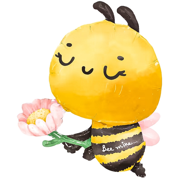 Шар (35''/89 см) Фигура, Мишка с бантом, Бежевый/Розовый, Сатин, 1 шт. в уп.