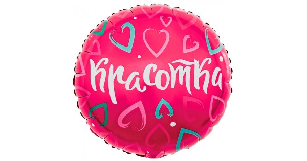 Шар (18''/46 см) Круг, Красотка (множество сердец), Розовый, 1 шт. в уп.