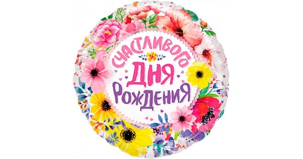 Шар (18''/46 см) Круг, Счастливого Дня Рождения (цветы), 1 шт. в уп.