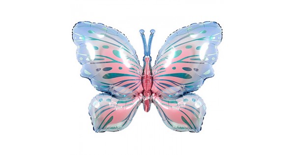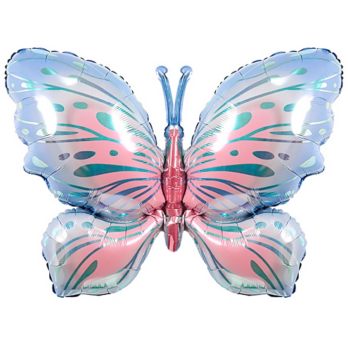 Шар (34''/86 см) Фигура, Воздушная бабочка, Голубой/Розовый, 1 шт. в уп.
