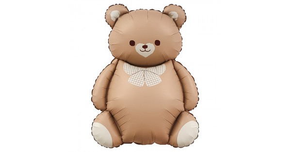 Шар (35''/89 см) Фигура, Мишка с бантом, Коричневый, Сатин, 1 шт. в уп.