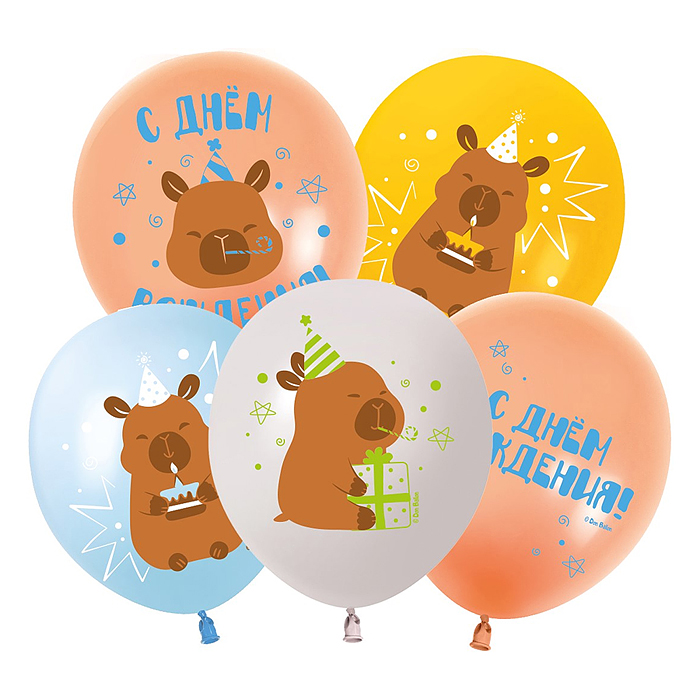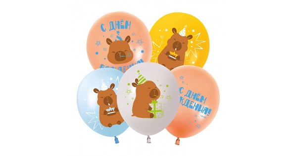 Шар (12''/30 см) Капибары, С Днем Рождения!, Ассорти, пастель, 2 ст, 25 шт.