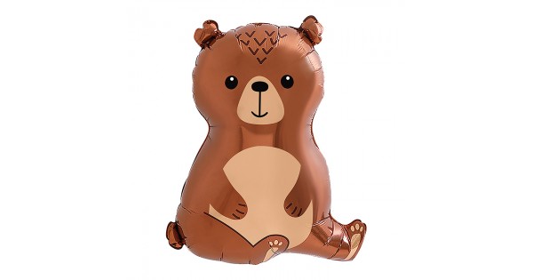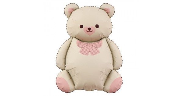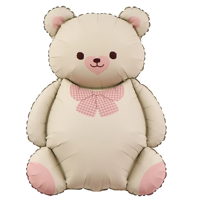 Шар (35''/89 см) Фигура, Мишка с бантом, Бежевый/Розовый, Сатин, 1 шт. в уп.