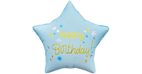 Шар (18''/46 см) Звезда, Happy Birthday (праздничные искры), Голубой, Сатин, 1 шт. в уп.
