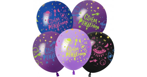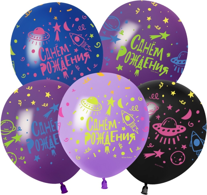 Шар (12''/30 см) Яркий космос, С Днем Рождения!, Ассорти, флуор, 5 ст, 25 шт.