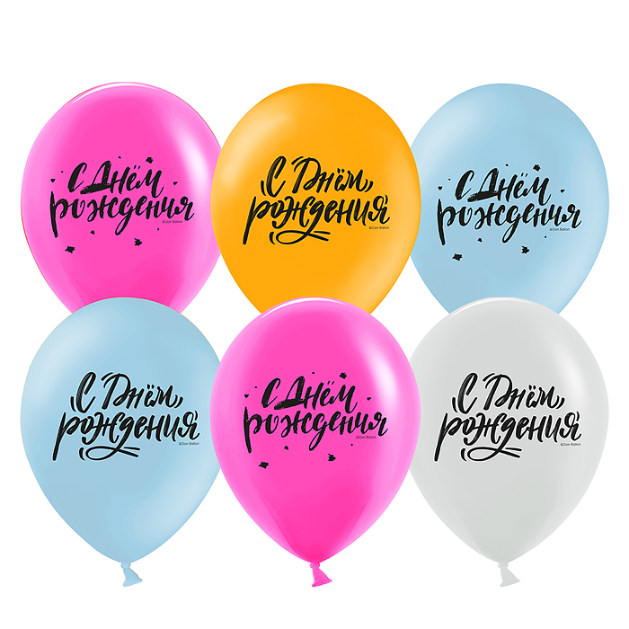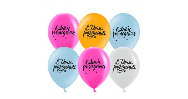 Шар (12''/30 см) С Днем Рождения! (шрифты), Ассорти, пастель, 2 ст, 25 шт.