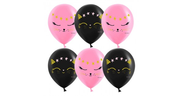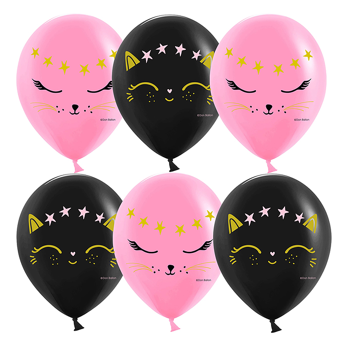 Шар (12''/30 см) Волшебный котенок, Черный/Розовый, пастель, 2 ст, 25 шт.