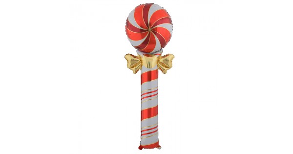 Шар (59''/150 см) Фигура, Леденец трость (надув воздухом), Красный/Золото, 1 шт. в уп.