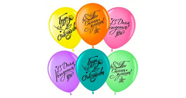 Шар (12''/30 см) С Днем Рождения, Ты Самая Лучшая!, Ассорти, пастель, 2 ст, 25 шт.