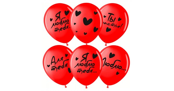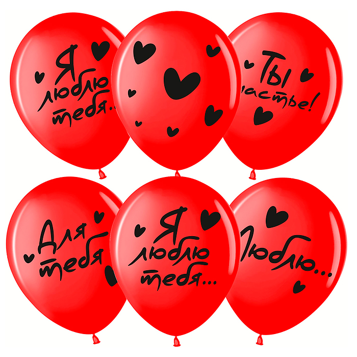 Шар (12''/30 см) Я Тебя Люблю ... (сердечки), Красный (230), пастель, 4 ст, 25 шт.