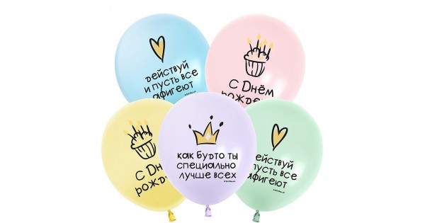 Шар (12''/30 см) С Днем Рождения! Ты Лучше Всех!, Ассорти, макарунс, 2 ст, 25 шт.