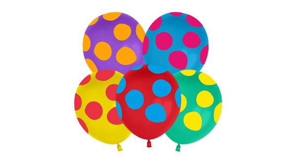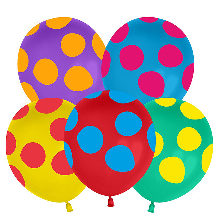 Шар (12''/30 см) Разноцветные точки, Ассорти, пастель, 5 ст, 25 шт.