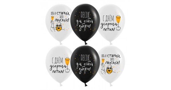 Шар (12''/30 см) С Днем ...летия!, Черный/Белый, пастель, 2 ст, 25 шт.