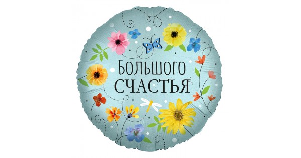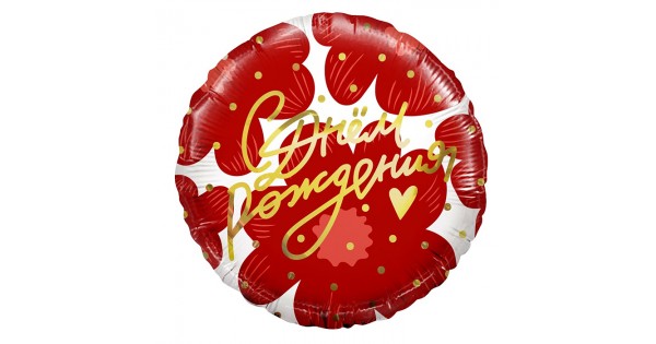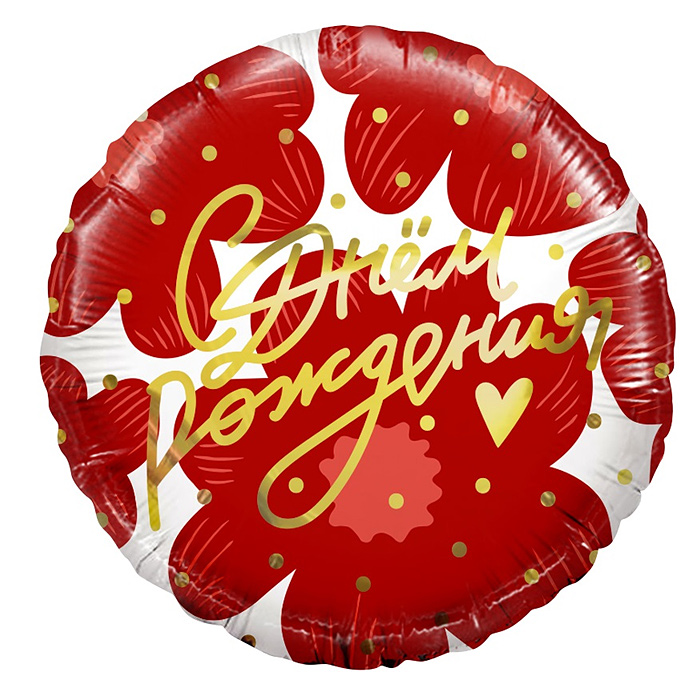 Шар (18''/46 см) Круг, С Днем Рождения! (цветы и золотое сердечко), 1 шт. в упак.