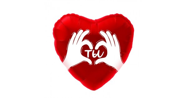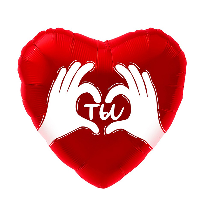 Шар (18''/46 см) Сердце, Ты (ладошки с любовью), Красный, 1 шт. в упак.