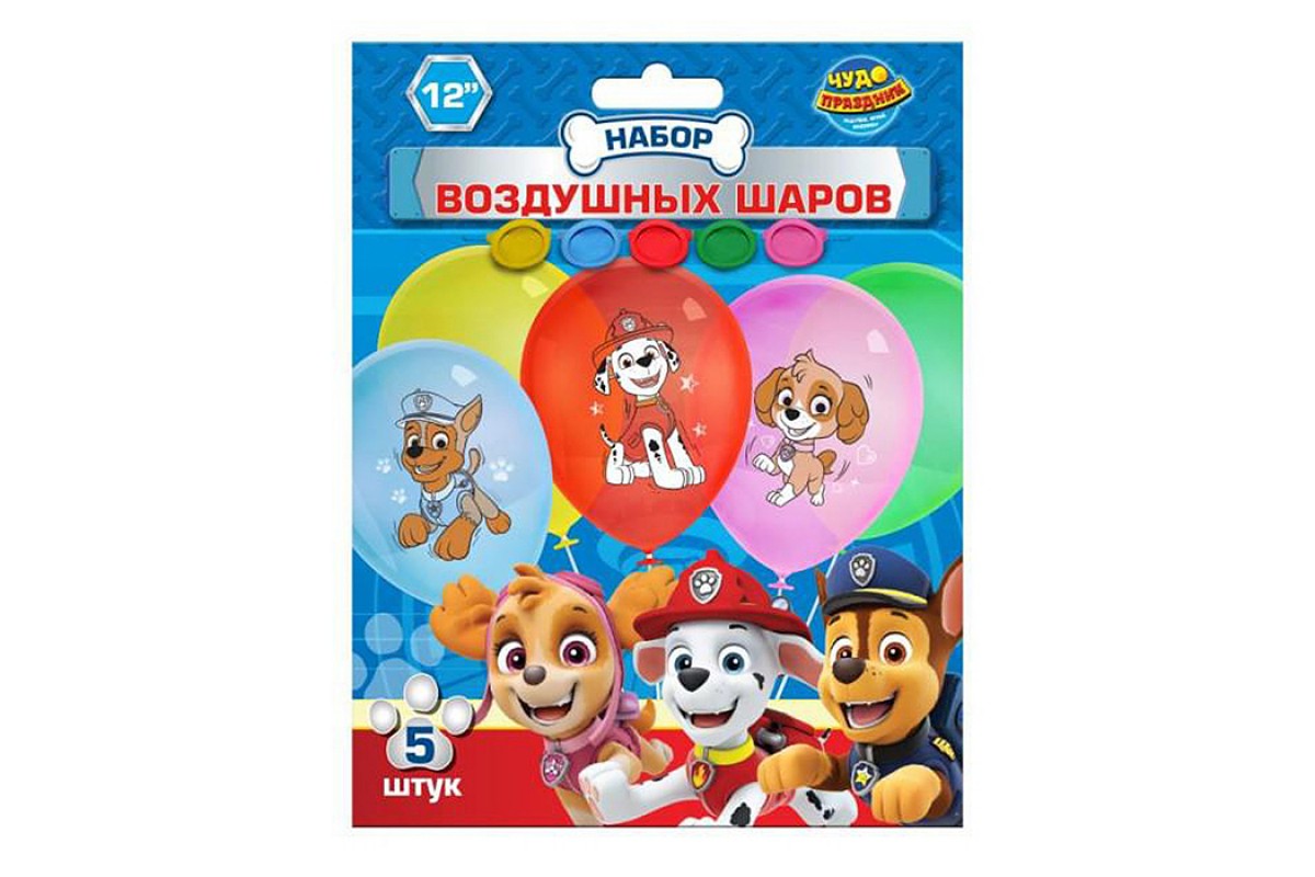 Латексные шары - набор 5 шт цветной принт, "Щенячий патруль"