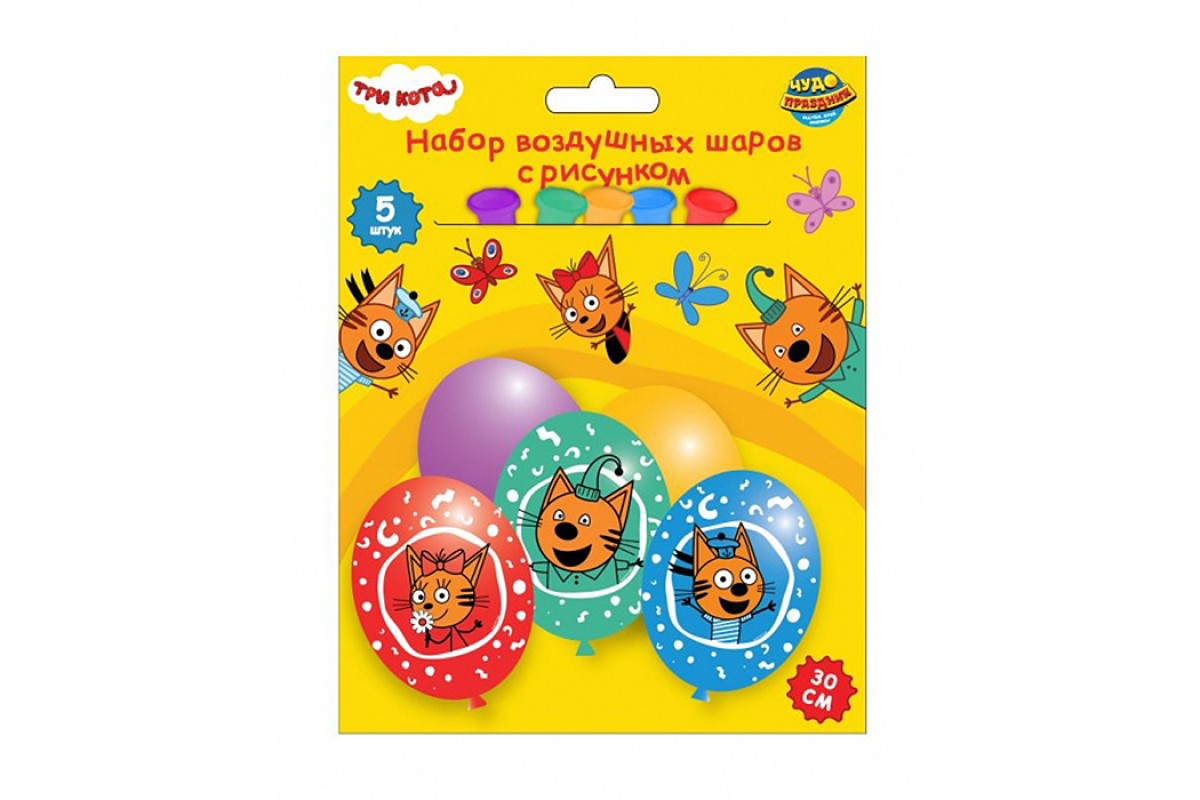 Латексные шары - набор 5 шт "Три Кота" цветной принт