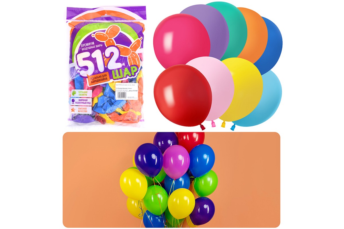 Шар (10''/25 см) Ассорти, пастель, 100 шт.