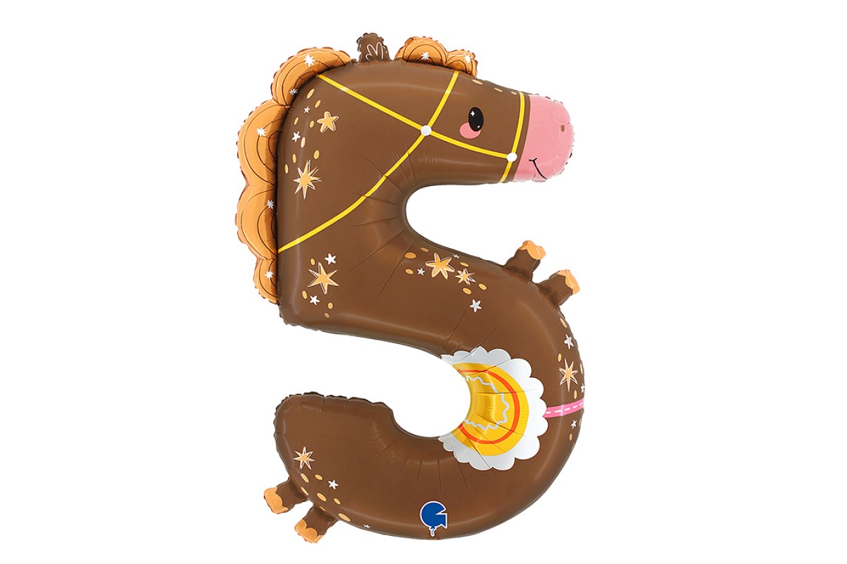 Шар (35''/89 см) Цифра, 5 Лошадка, 1 шт. в уп.
