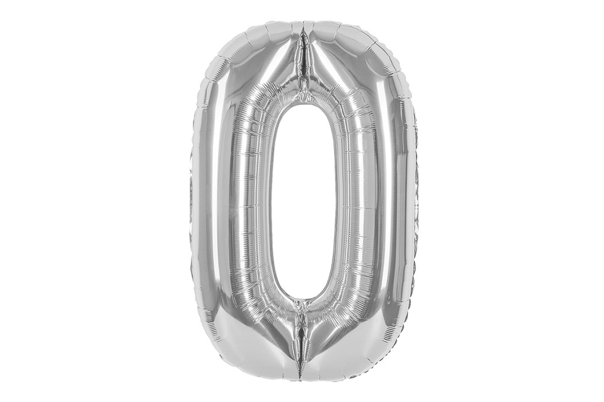 Шар (40''/102 см) Цифра, 0, Серебро, 1 шт. в уп.