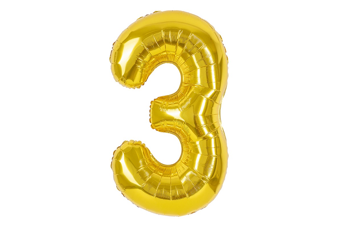 Шар (40''/102 см) Цифра, 3, Золото, 1 шт. в уп.