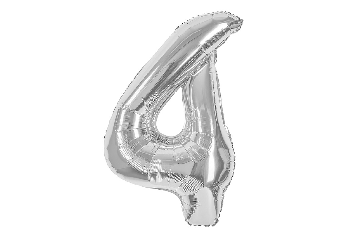 Шар (40''/102 см) Цифра, 4, Серебро, 1 шт. в уп.
